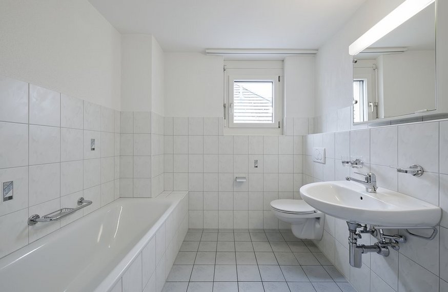 - Badezimmer mit Badewanne, WC und Lavabo