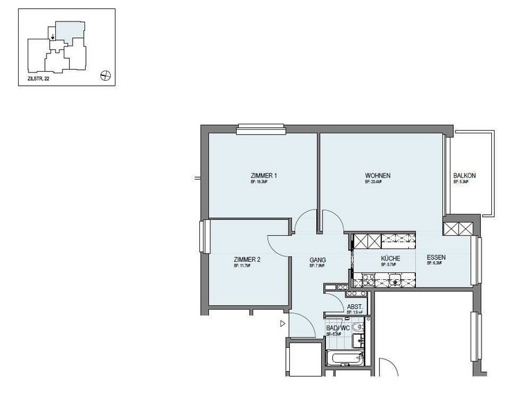 - Zusätzlich auf Wunsch: Einstellplatz Tiefgarage CHF 130.-/Monat